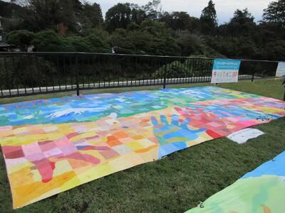 キッズゲルニカが完成し、11月2日~9日まで白糸の滝芝生広場で展示されます。
