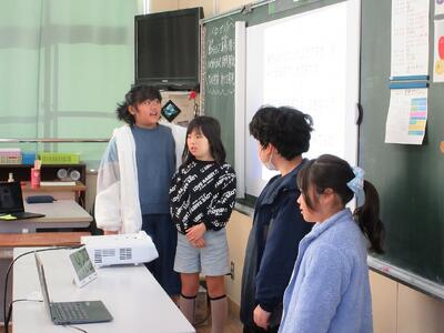 今日は山宮小とリモートでつなぎ、完成間際の交流会を行いました。