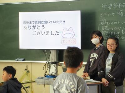 大人の参観者の方からも「スライドや模型を使って、工夫して発表していて感心した。」「初めて知ったことがたくさんあって、とても楽しかった。」という感想をいただきました。