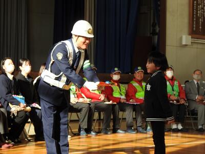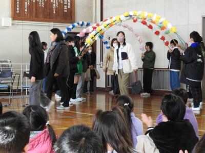 これまで富士根北小のリーダーとして活躍してきた6年生から新リーダーとなる5年生へのバトンタッチの式です。