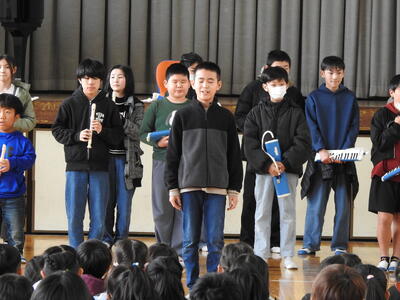 各学年の合唱や合奏、全校でのゲーム、6年生の合奏等々、とても心のこもった会でした。