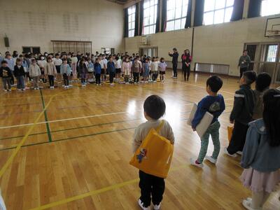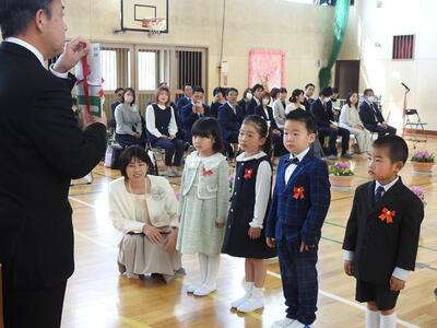 23名の新1年生は、担任の先生から名前を呼ばれると元気よく返事をすることができました。また、在校生代表として5名の6年生が参加しました。1年生を歓迎する言葉や、学校で学習することなどを堂々と伝える姿が立派でした。