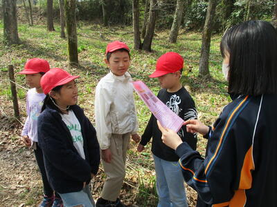 今日は富士根北中生とともに、かたくり鑑賞交流会を行いました。5・6年生はかたくりの個体数調査も行いました。