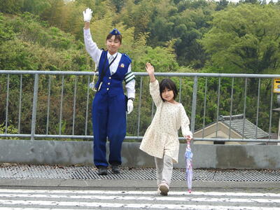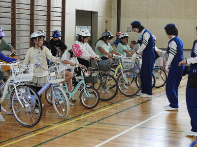 富士宮警察署から交通安全指導員の方に来ていただき、1年生は道路の歩行練習を、4年生は自転車の乗り方を教えていただきました。毎年5~6月は、全国的にこどもの交通事故が多いそうです。