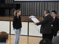 その後6年生のリーダーワッペン授与式を行いました。今、6年生の左肩には、交通安全リーダーワッペンが輝いています。交通安全はもちろんのこと、学校生活のよいお手本となってほしいと思います。